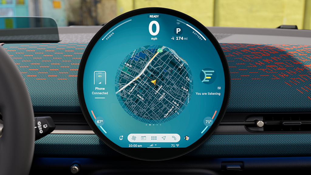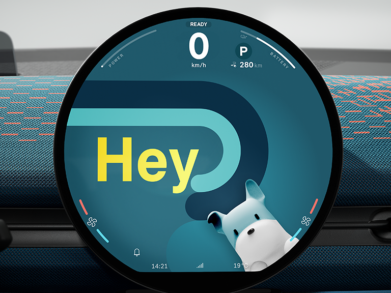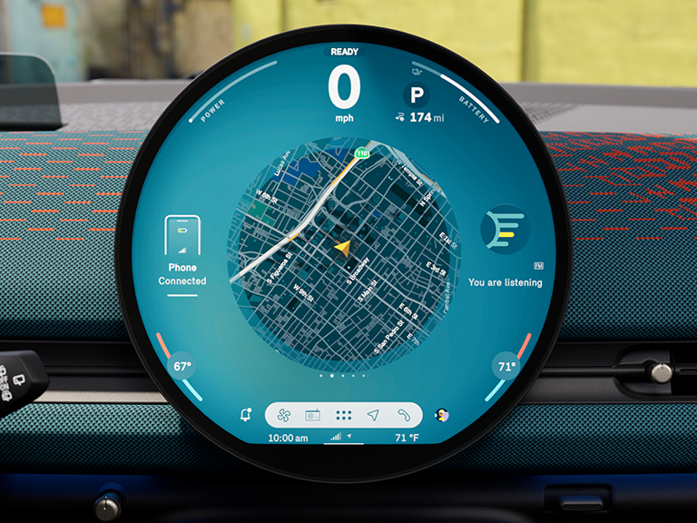 Het iconische centrale display met een diameter van 240 mm van hoogwaardig glas is zowel je instrumentenpaneel als je infotainment- en assistentiecentrum. Het is tevens 's werelds eerste ronde display.