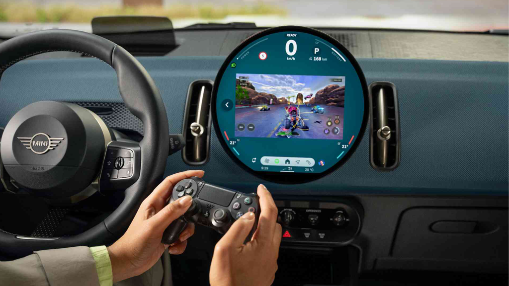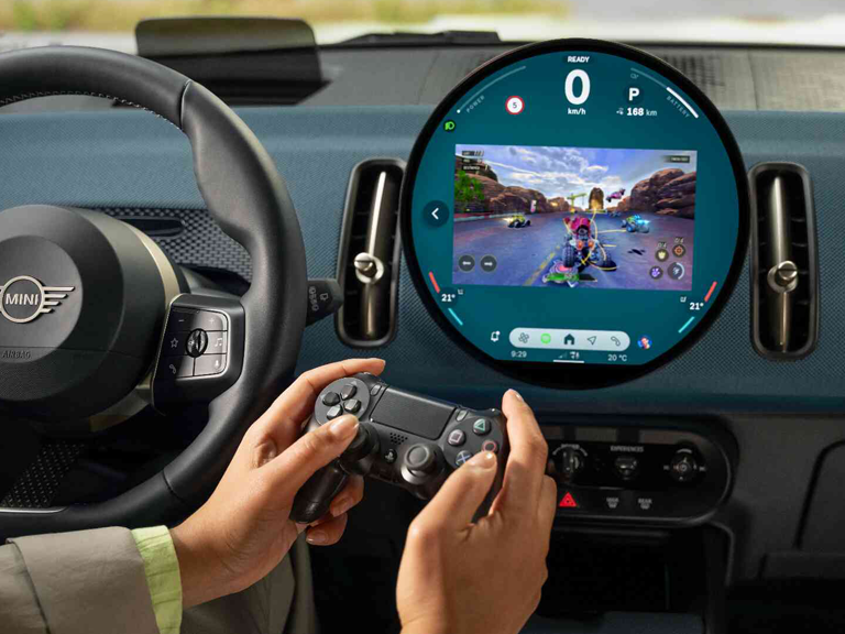 Een spelconsole, Available AirConsole, is rechtstreeks in het MINI display geïntegreerd, zodat je kunt gamen als je geparkeerd staat. Dankzij tot wel 50 apps van derden hoef je je tijdens een korte break nooit meer te vervelen.