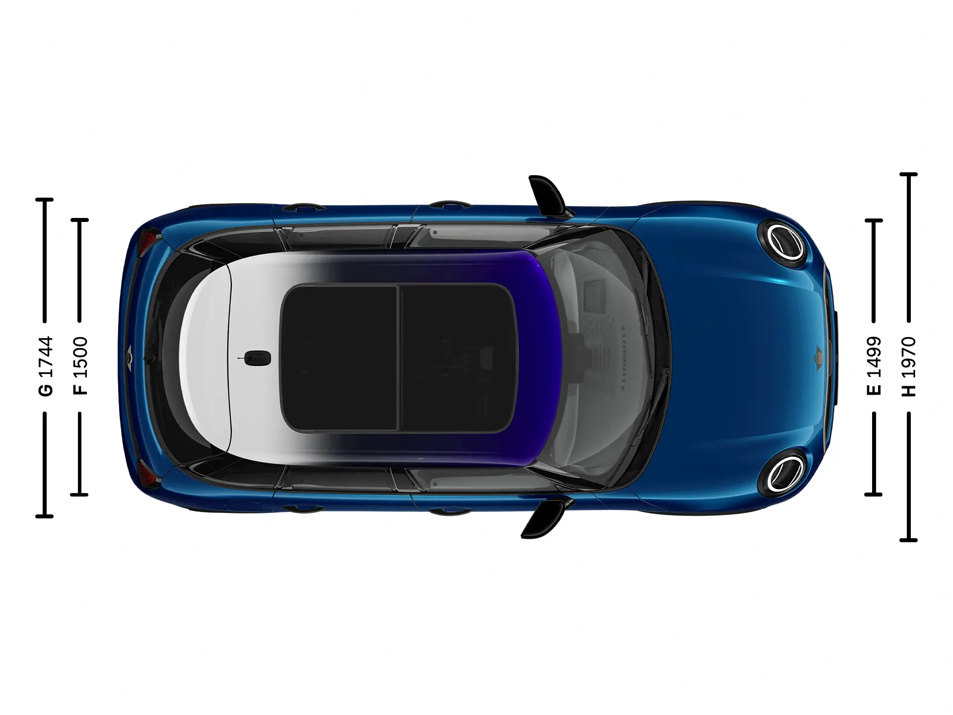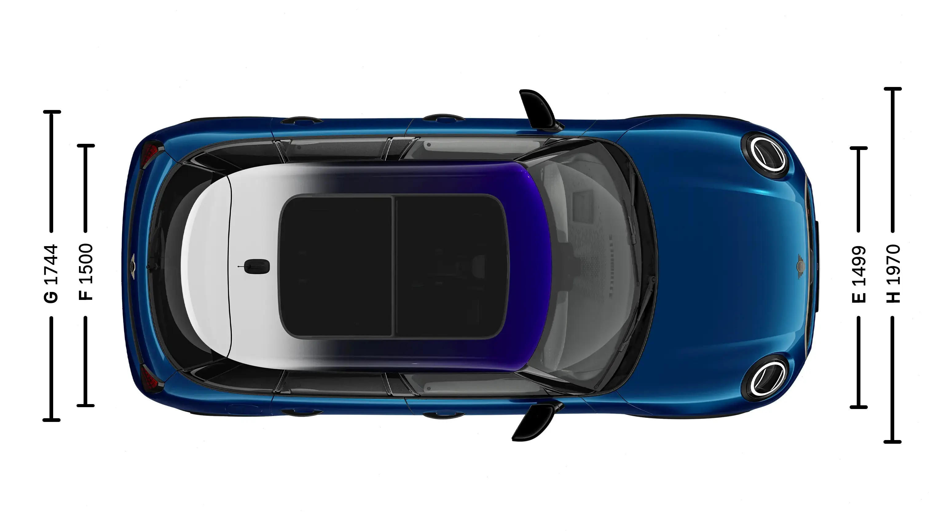 | (G) Hoofdruimte glazen panoramadak, voorin | 981 mm |